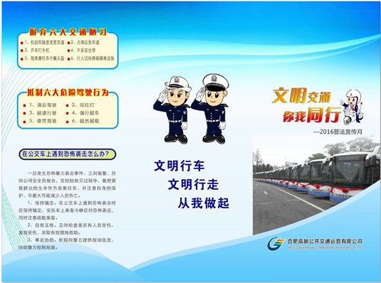 為結合公司普法宣傳工作的開(kāi)展,進(jìn)一步推進(jìn)“文明行車(chē),文明行走” 專(zhuān)項整治工作的落實(shí),提升優(yōu)質(zhì)服務(wù)水平,普及安全出行的相關(guān)知識,近日,高新公交定制《文明交通,你我同行》宣傳冊300份。
