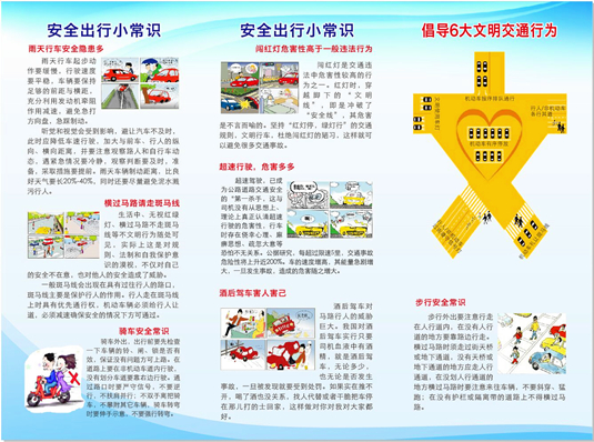 宣傳冊?xún)热葜饕ò踩鲂行〕WR、倡導六大文明交通行為、摒棄六大交通陋習、抵制六大危險駕駛行為和公交車(chē)上遇到恐怖襲擊的處理辦法。這些宣傳冊印刷精美,內容豐富,采用圖文并茂的方式宣傳法治知識,讓法制知識不再枯燥。