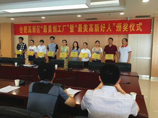 2016年3月,合肥高新區文明委、工委辦公室聯(lián)合舉辦了合肥高新區“尋找高新區最美創(chuàng )工廠(chǎng)”和“尋找最美高新好人”首屆網(wǎng)絡(luò )評選活動(dòng),高新公交工作人員于7月7日參加了“最美創(chuàng )工廠(chǎng)”的頒獎儀式。