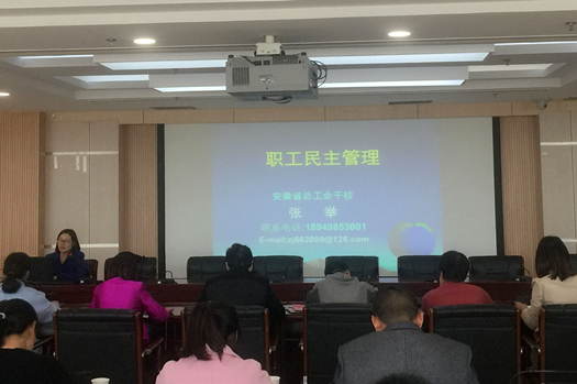 此次培訓由安徽省總工會(huì )干校教授張舉為大家進(jìn)行授課,張舉教授以《職工民主管理》為題,詳細地講解了職工民主管理概述、職工代表大會(huì )制度、企業(yè)事務(wù)公開(kāi)制度等內容。張舉教授所授的課程既有理論高度又緊貼工作實(shí)際,操作性和實(shí)用性都較強,對今后進(jìn)一步做好工會(huì )民主管理工作具有很強的指導作用。