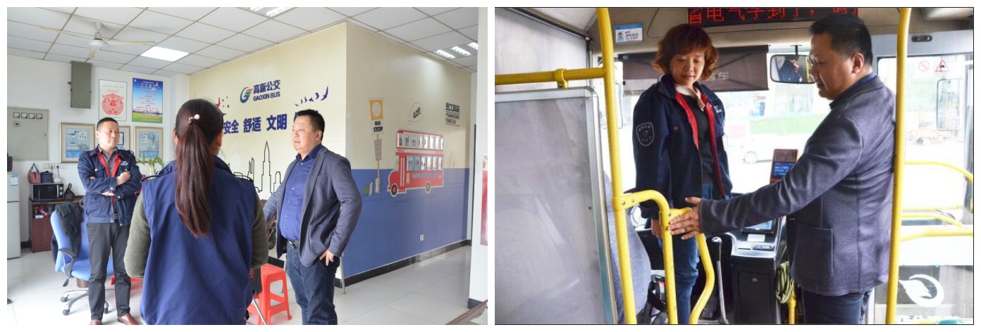 檢查組一行先后深入到汽車(chē)客運西站、省電氣學(xué)校、柳樹(shù)塘及柏堰工業(yè)園首末站。每到一處,公司領(lǐng)導都會(huì )詳細詢(xún)問(wèn)工作情況,重點(diǎn)指出安全工作的重要性,要求每位駕駛員把乘客的生命安全放在首位,并強調清明節假日要加強期間安全行車(chē)意識,務(wù)必嚴格遵守交通安全法規,遵守安全行車(chē)規定,嚴禁出現超速、疲勞駕駛等違規情況。