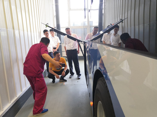 此時(shí),在車(chē)內溫度高達42攝氏度,高新公交的檢驗小組正有條不紊開(kāi)展著(zhù)檢驗工作,對空調、車(chē)載電子設備、安全設施、車(chē)載監控等方面進(jìn)行了長(cháng)達6小時(shí)的查驗工作,同時(shí),安凱技術(shù)人員對車(chē)輛的配置優(yōu)化的進(jìn)行了講解,加深了對此批車(chē)輛性能的進(jìn)一步了解。車(chē)內檢查結束后,被汗水浸濕衣服的工作人員繼續著(zhù)檢驗工作,又對乘客門(mén)、各艙門(mén)開(kāi)關(guān)、外觀(guān)覆蓋件、可見(jiàn)部位裝配等車(chē)外配件逐一核對,對車(chē)輛的外觀(guān)進(jìn)行一個(gè)詳細的檢查,查看車(chē)身漆面是否有劃痕,檢查輪胎生產(chǎn)日期,確保所配備的輪胎符合要求。最后針對電機控制部分運行情況、倒車(chē)鏡、剎車(chē)等部分,進(jìn)行了現場(chǎng)路試測試。