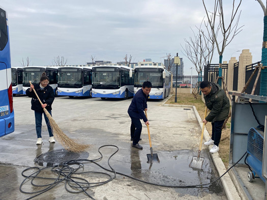 隨著(zhù)冷空氣到來(lái),持續的低溫天氣導致場(chǎng)站內早晚地面易結冰,給車(chē)輛安全帶來(lái)巨大的隱患。12月28日上午,高新公交黨支部組織黨員同志,主動(dòng)在場(chǎng)站內進(jìn)行義務(wù)打掃志愿活動(dòng),以實(shí)際行動(dòng)弘揚雷鋒精神,掃除多余積水,保障車(chē)輛安全。