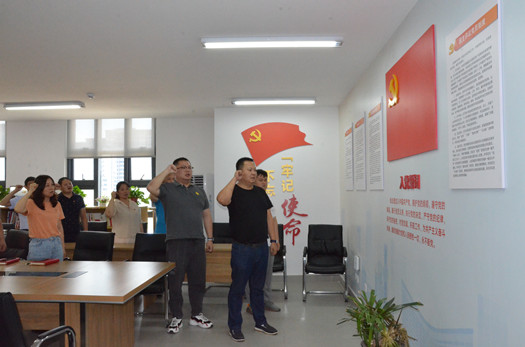 會(huì )后,在黨支部書(shū)記孔強同志的帶領(lǐng)下,全體黨員面對黨旗,神情肅穆、舉起右拳,莊嚴宣誓。一字一句,神圣豪邁,讓現場(chǎng)所有黨員更加堅守使命,不忘初心,時(shí)刻以黨員的標準嚴格要求自己、時(shí)刻以黨員的先進(jìn)性鞭策激勵自己,為實(shí)現高新公交各項工作高質(zhì)量發(fā)展提供了堅強的組織保障。