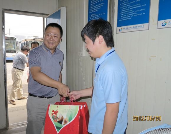 隨著(zhù)端午節的臨近,6月20日上午,高新公交公司負責人在相關(guān)部門(mén)人員的陪同下,先后深入夢(mèng)園小區首末站、汽車(chē)客運西站首末站、柏堰科技園首末站、省電氣學(xué)校首末站等各公交站點(diǎn),開(kāi)展端午節前慰問(wèn)活動(dòng),為奮戰在一線(xiàn)的員工送上了粽子、綠豆糕等節日禮品,同時(shí)也送去了公司領(lǐng)導對一線(xiàn)員工的關(guān)愛(ài)。