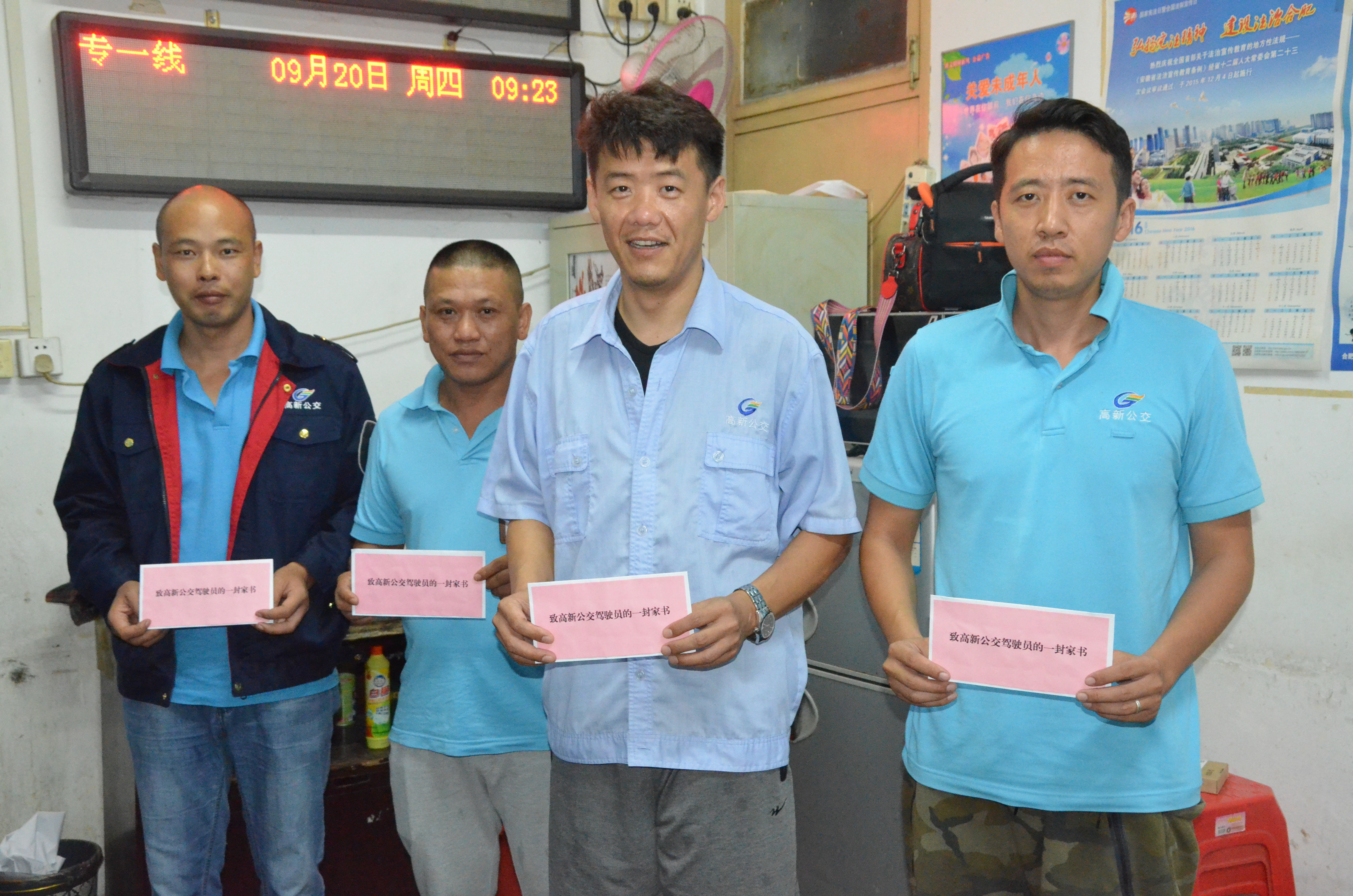 活動(dòng)伊始,高新公交黨員同志前往公司各公交調度室,將一封封家書(shū)送至每位駕駛員的手上,并制作《致高新公交駕駛員的一封家書(shū)》宣傳畫(huà)貼在各公交調度室醒目位置,時(shí)刻提醒駕駛員在節假日期間自覺(jué)遵守《道路交通安全法》等交通安全法律法規,安全文明駕駛車(chē)輛。